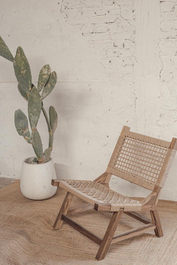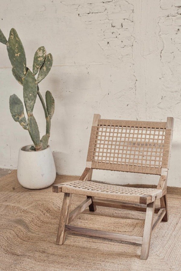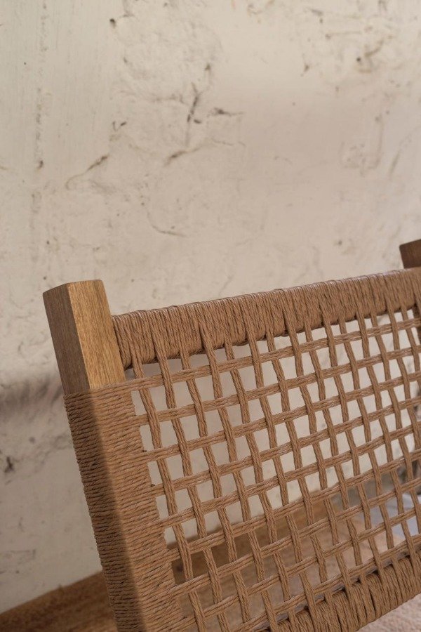 Poltrona de Petiribi macizo con asiento y respaldo tejidos en Hilo Kraft.